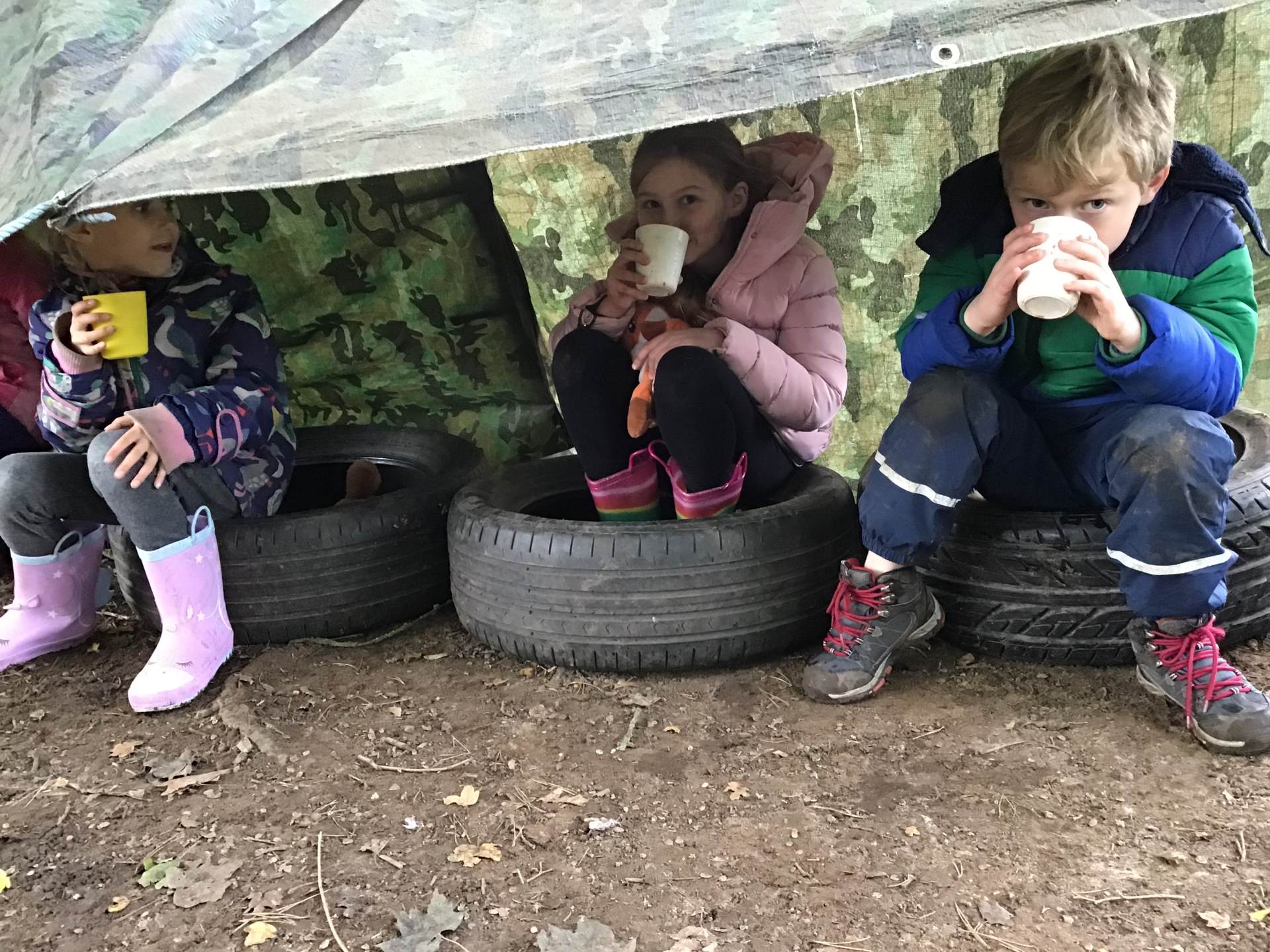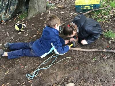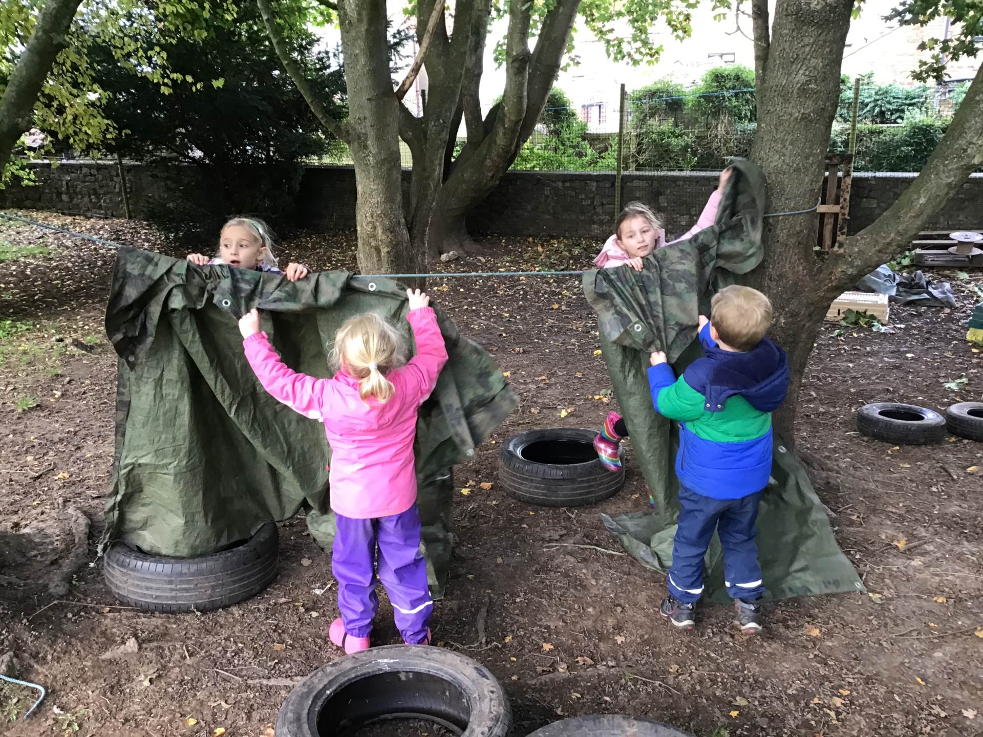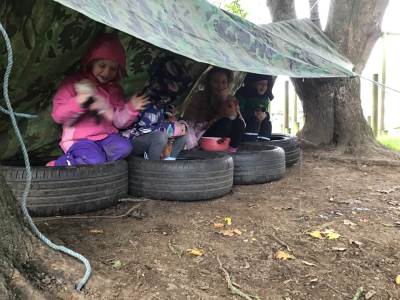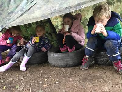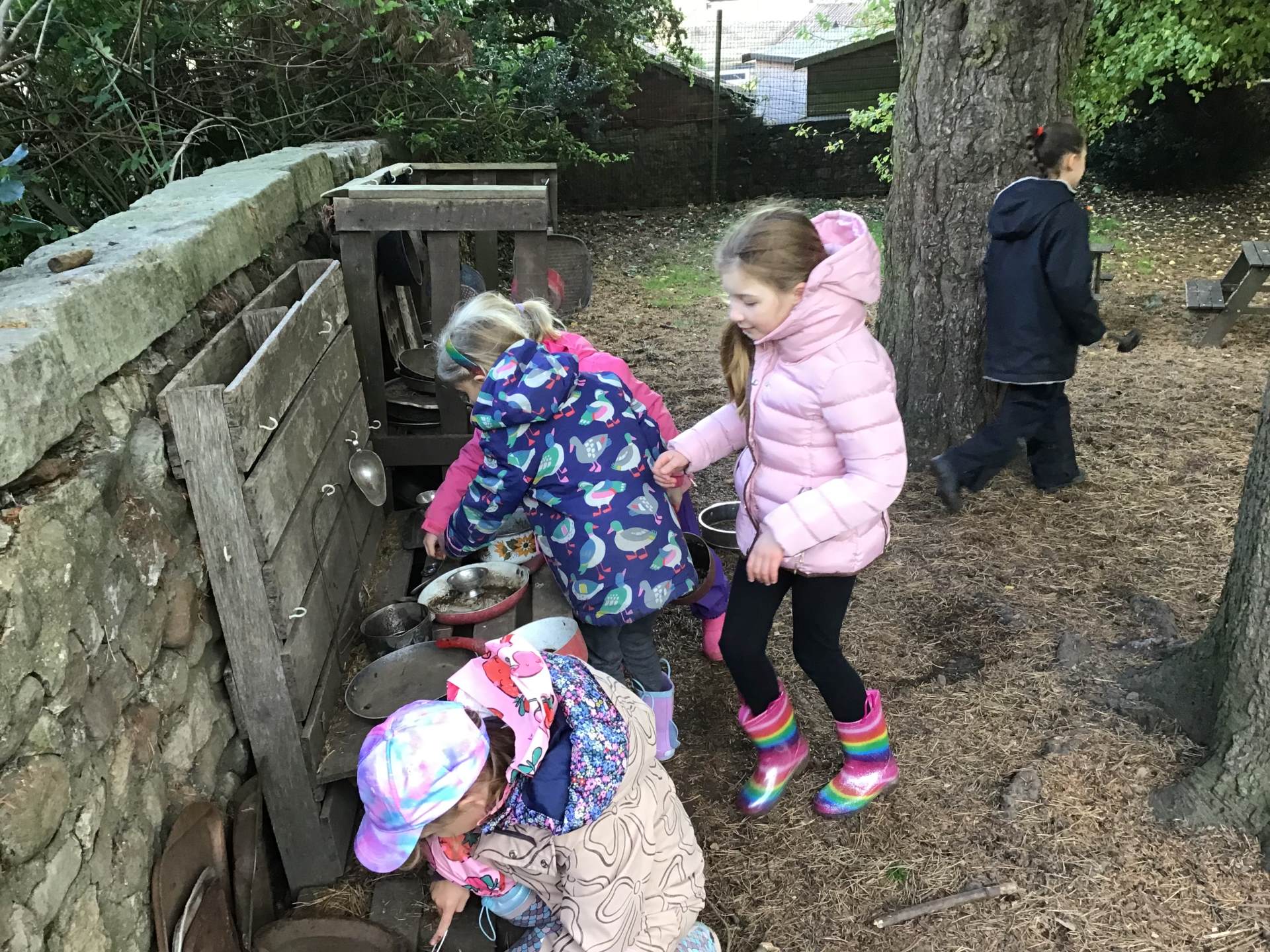 Pupils link their learning to the classroom and are able to access our outdoor Forest School provision throughout the school day, enjoying our whole-school mud kitchen and den-building area.